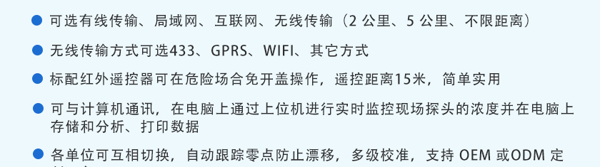①4-20mA信號:傳輸距離1Km  ②RS485信號:傳輸距離2Km