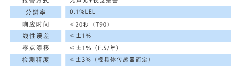 采用進口催化燃燒傳感器和微控制器技術,無顯示,無聲光+視覺報警,適用于各種環境中的可燃氣體濃度檢測,響應速度快,測量精度高,穩定性和重復性好,整機性能居國內領先水平。儀器具有多種超強的電路保護功能,可防止錯接電源、反接電源、電源短路、電源不穩、電源與信號錯解等,導致的儀器損壞。