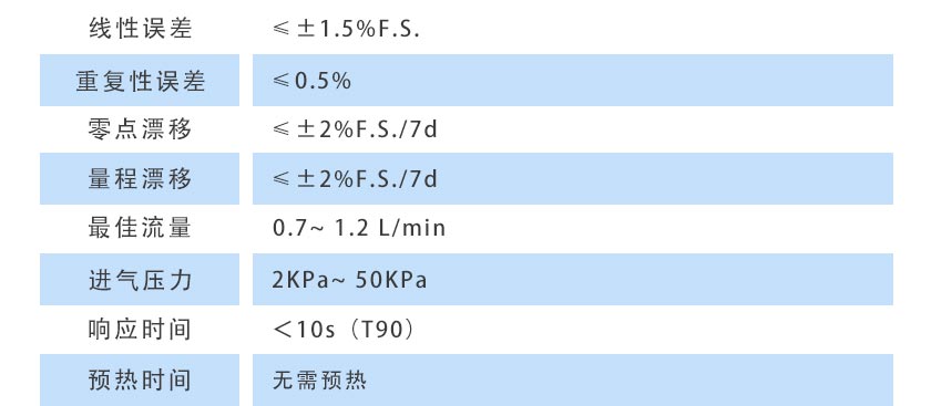 SO2、NO:0~200~2000mg/m3;O2:0~25%;CO:0~625mg/m3; CO2:0~65%(量程可以根據用戶實際需求配置) |