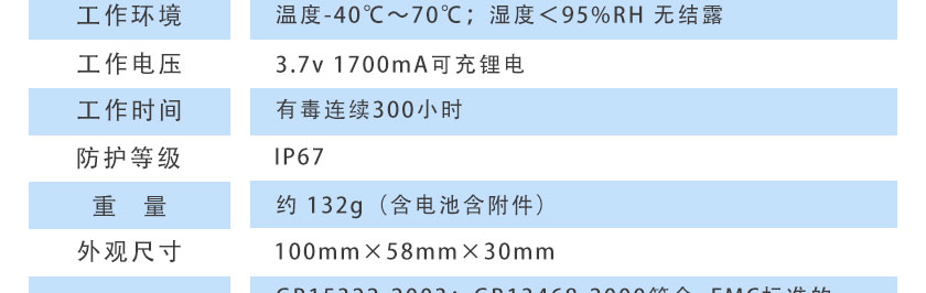 溫度-40℃~70℃;濕度<95%RH 無結露 |