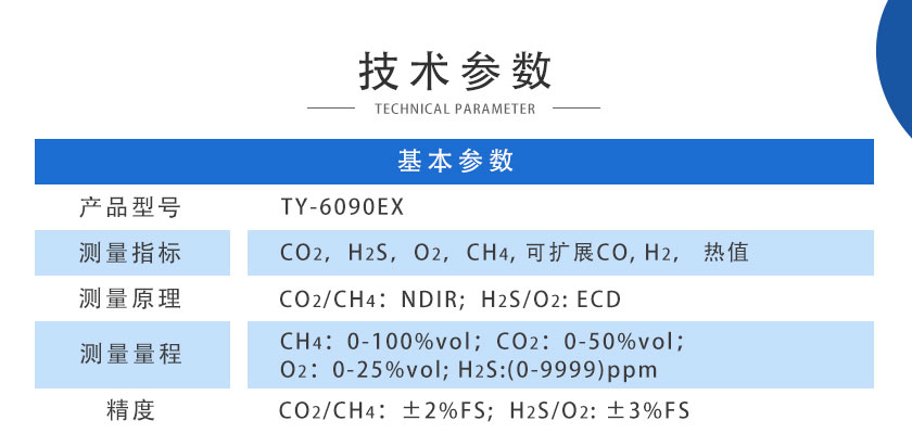 CO2,H2S,O2,CH4,可擴展CO, H2,熱值 |