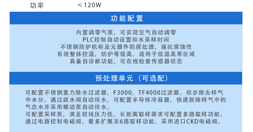可配置采樣泵,滿足現(xiàn)場壓力低,長距離取樣需求可配置多路取樣功能,通過電路控制電磁閥,最多擴展至6路取樣功能,采用進(jìn)口CKD電磁閥。 |