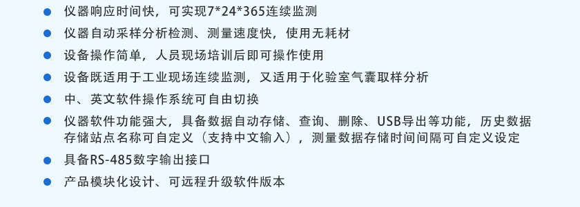 (7)儀器響應(yīng)時間快,可實現(xiàn)7*24*365連續(xù)監(jiān)測。