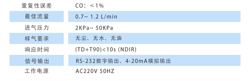 (6)重復(fù)性誤差:CO:≤1%