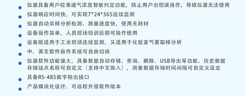 (10)設(shè)備既適用于工業(yè)現(xiàn)場連續(xù)監(jiān)測,又適用于化驗(yàn)室氣囊取樣分析