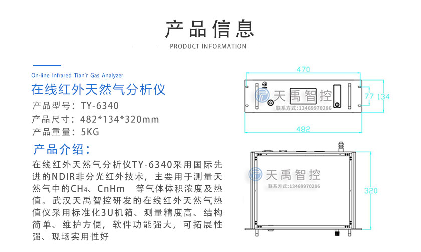 • 在線紅外天然氣分析儀 TY-6340 在線紅外天然氣分析儀TY-6340采用自主知識產(chǎn)權(quán)的NDIR非分光紅外技術(shù),主要用于測量天然氣中的CH4、CnHm?等氣體體積濃度及熱值。武漢天禹智控研發(fā)的在線紅外天然氣熱值儀采用標(biāo)準(zhǔn)化3U機(jī)箱、測量精度高、結(jié)構(gòu)簡單、維護(hù)方便,軟件功能強(qiáng)大,可拓展性強(qiáng)、現(xiàn)場實(shí)用性好。目前廣泛應(yīng)用于燃?xì)饩呱a(chǎn)企業(yè)、廠商,燃?xì)庥?jì)量檢測部門、節(jié)能監(jiān)測部門,科研、環(huán)保和配氣等行業(yè),天然氣公司,液化氣廠、液化氣站等領(lǐng)域,測量天然氣中不同成分的體積濃度和熱值。
