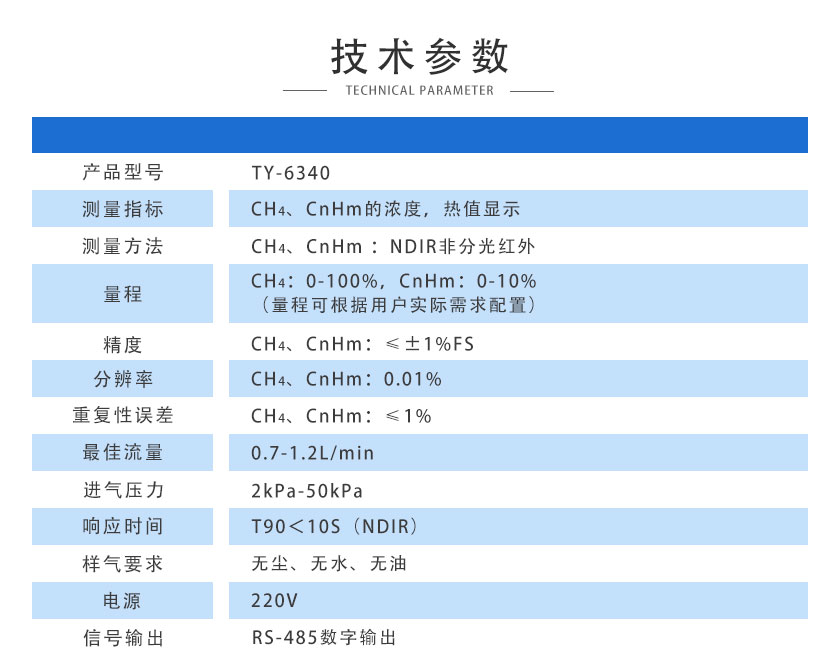 CH4:0-100%,CnHm:0-10%(量程可根據(jù)用戶實(shí)際需求配置)