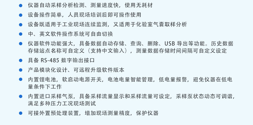 (11)設備既適用于工業現場連續監測,又適用于化驗室氣囊取樣分析。